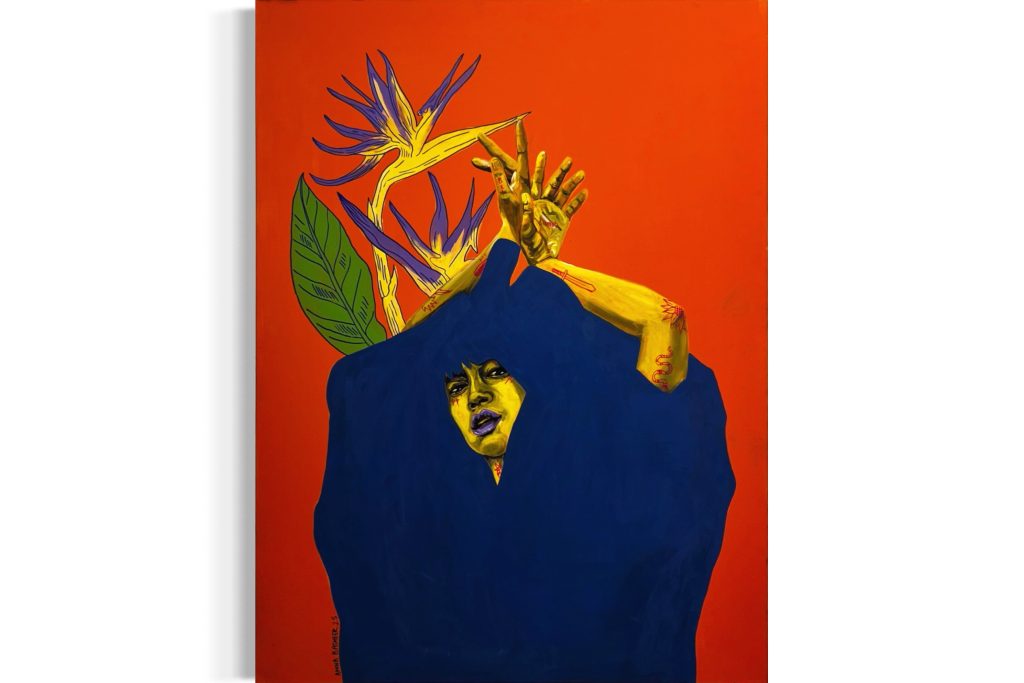 60" x 48"-Acrylic paint and markers on canvas.